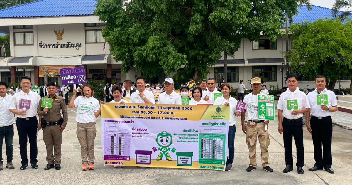 ข้าราชการตำรวจ สภ.โนนสูง ร่วมรณรงค์เชิญชวนออกมาใช้สิทธิเลือกตั้ง สส. 2566 ในวันอังคาร ที่ 9 พฤษภาคม 2566 เริ่มเดินขบวนจากที่ว่าการอำเภอโนนสูง ถึง เทศบาลตำบลโนนสูง