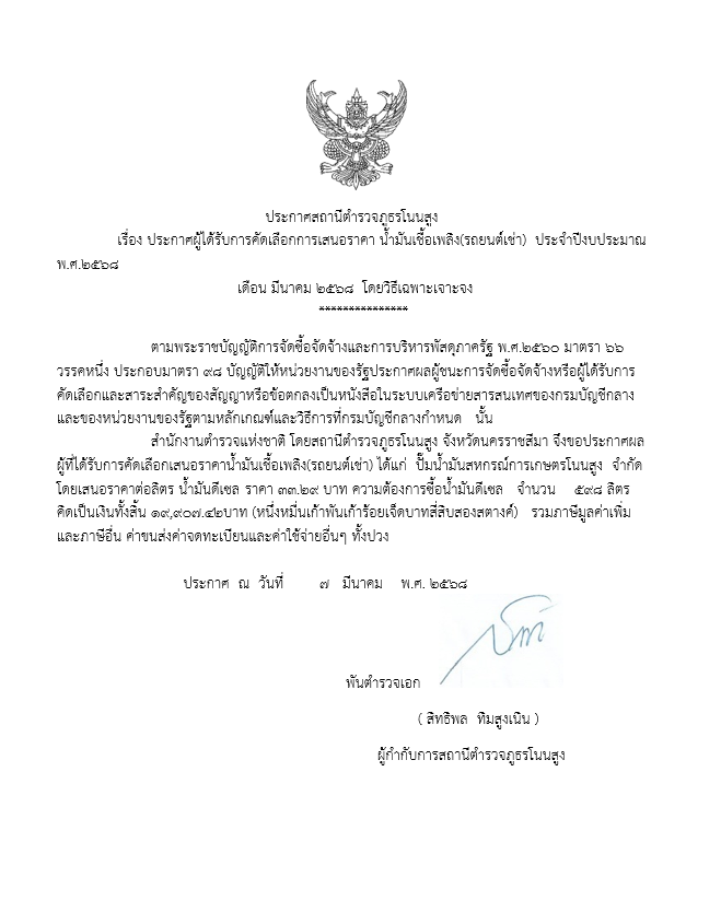 ประกาศผลการจัดซื้อจัดจ้าง เดือนมีนาคม 2568