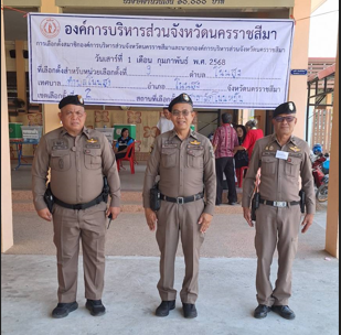 พ.ต.ท.วิโรจน์ การเรียน รองผกก.ป.สภ.โนนสูง พร้อมด้วย พ.ต.ท.เฉลียว เจริญสุข สวป.ฯ ได้มาตรวจหน่วยเลือกตั้ง ส.อบจ.และ นายก อบจ. อ.โนนสูง หน่วยเลือกตั้งที่ 9 เขตเลือกตั้งที่ 2 สถานที่เลือกตั้ง ศาลาวัดโนนหมัน ต.โนนสูง เหตุการณ์ทั่วไปปกติ