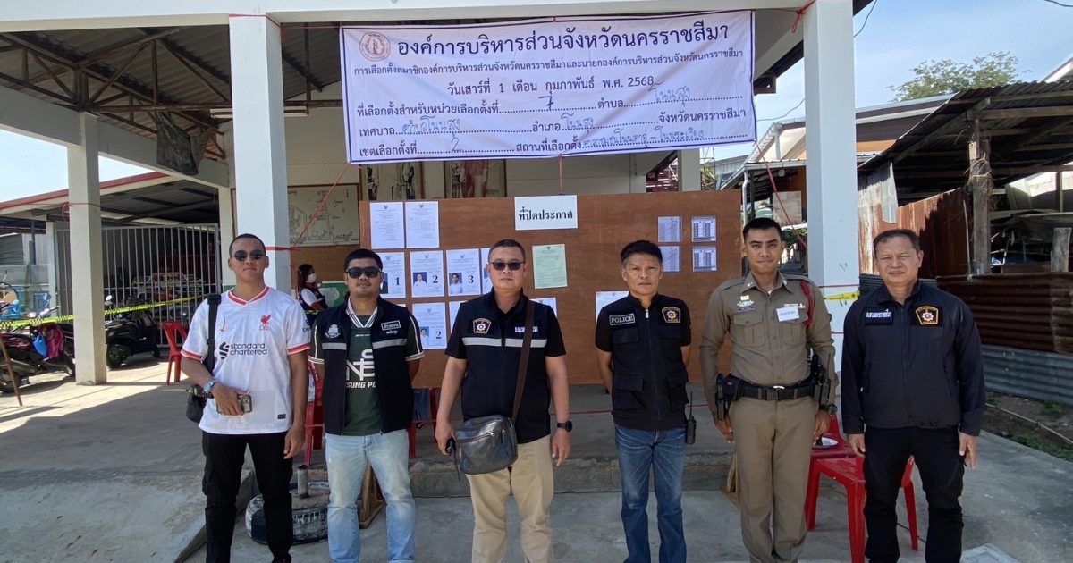 พ.ต.ท.ภคพล สมควร รอง ผกก.สส.สภ.โนนสูง พร้อมด้วย ชุดเคลื่อนที่เร็ว ได้มาตรวจหน่วยเลือกตั้ง ส.อบจ.และ นายก อบจ. อ.โนนสูง หน่วยเลือกตั้งที่ 7 เขตเลือกตั้งที่ 2 สถานที่เลือกตั้ง ศาลาชุมชนโนนตาอู่-โนนระเวียง เขตเทศบาลตำบลโนนสูง เหตุการณ์ทั่วไปปกติ