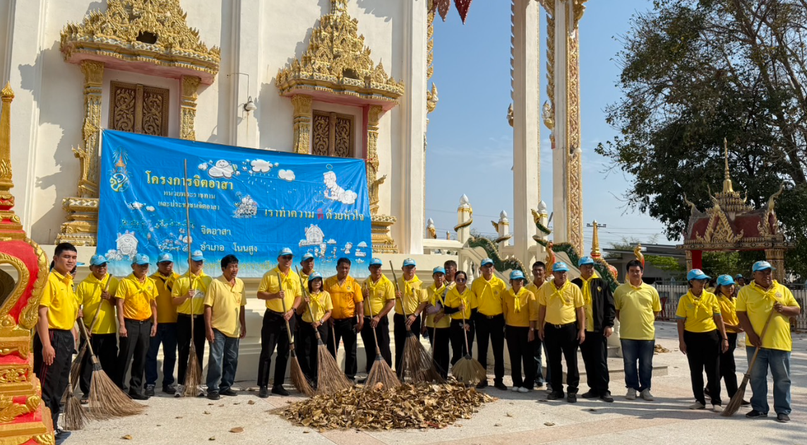 วันที่ 26 กุมภาพันธ์ 2568 เวลา 10.40 น. ภายใต้อำนวยการ พ.ต.อ.สิทธิพล ทิมสูงเนิน ผกก.สภ.โนนสูง มอบหมายให้ พ.ต.ต.สถิต อิ่มพรมราช สวป.(ชส.)สภ.โนนสูง พร้อมด้วย ข้าราชการตำรวจชุดจิตอาสา สภ.โนนสูง ร่วมกิจกรรมโครงการ “อำเภอยิ้ม…เคลื่อนที่” ประจำเดือน กุมภาพันธ์ 2568 ณ วัดบ้านบิง หมู่ที่ 5 ต.บิง อ.โนนสูง จ.นครราชสีมา โดย นายจิรเดช พงษ์ประสิทธิ์ นายอำเภอโนนสูง นำข้าราชการฝ่ายปกครอง รัฐวิสาหกิจ ปกครองส่วนท้องถิ่น ตำรวจ และประชาชนจิตอาสา จัดกิจกรรมจิตอาสาร่วมกันพัฒนาวัดบ้านบิง