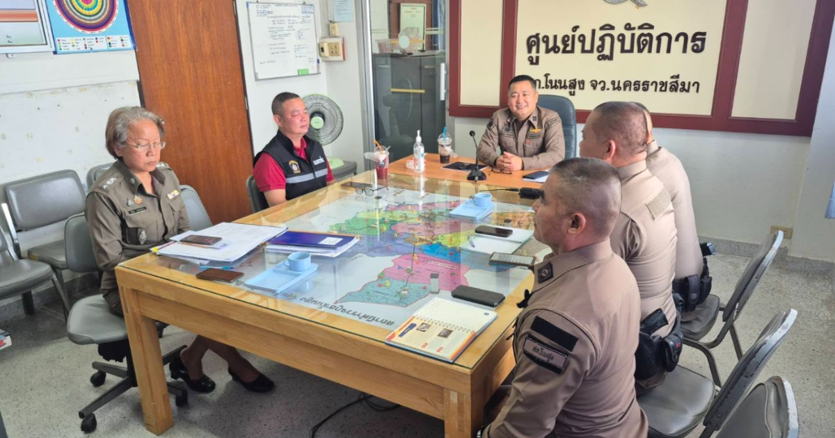 วันที่ 8 เม.ย. 68 เวลา 10.00 น.พ.ต.อ.สิทธิพล ทิมสูงเนิน ผกก.สภ.โนนสูง พ.ต.ท.วิโรจน์ การเรียน รอง ผกก.ป.ฯ พ.ต.ท.ภคพล สมควร รอง ผกก.สส.ฯ พ.ต.ท.เฉลียว เจริญสุข สวป.ฯ พ.ต.ท.หญิงจำเรียง พรอมตรุ่งเรื่อง สว.อก.ฯ พ.ต.ต.สถิต อิ่มพรมราช สวป.(ชส.)ฯ และ ร.ต.อ.ทวีศักดิ์ พิทักษ์ รอง สว.สส.ฯ เฝ้าฟังการประชุมเรื่อง จราจร สงกรานต์ ภ.จว.ผ่านระบบประชุมทางไกล(Zoom) ณ ห้อง ศปก. สภ.โนนสูง