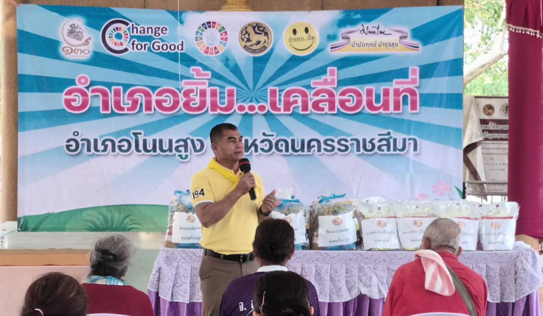 เมื่อวันที่ 21 มีนาคม 2568 เวลา 07.00 น. ภายใต้การอำนวยการ พ.ต.อ.สิทธิพล ทิมสูงโนน ผกก.สภ.โนนสูง มอบหมายให้ พ.ต.ต.สถิต อิ่มพรมราช สวป.(ชส.) สภ.โนนสูง และ ร.ต.อ.พิษณุ การถาง รอง สว.ธร.สภ.โนนสูง ร่วมกิจกรรมโครงการอำเภอ…เคลื่อนที่ กับอำเภอโนนสูงและส่วนราชการต่างๆ ณ วัดโค้งกระชาย ตำบลจันอัด อำเภอโนนสูง จังหวัดนครราชสีมา โดยมีนายจิรเดช พงษ์ประสิทธิ์ นายอำเภอโนนสูงเป็นประธาน