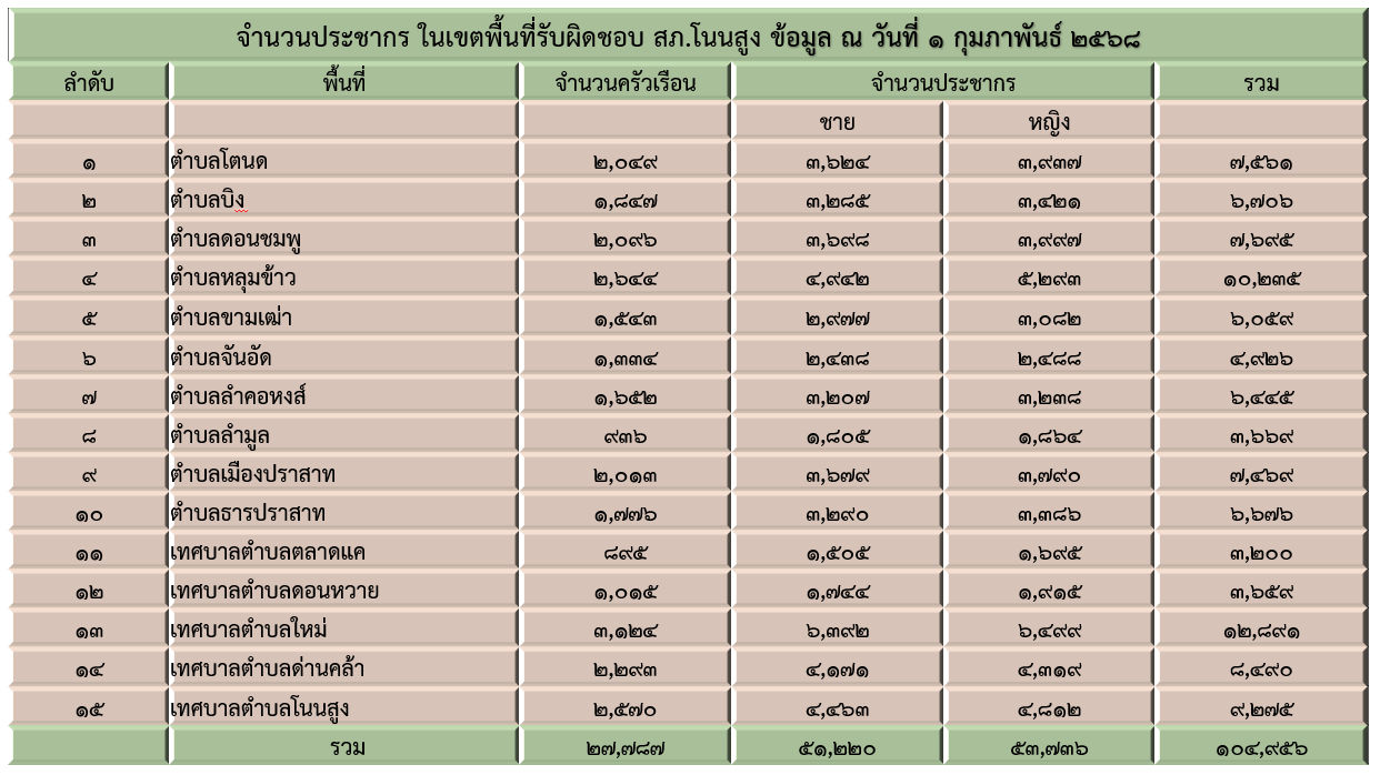 ข้อมูล ณ วันที่ 1 มกราคม 2568