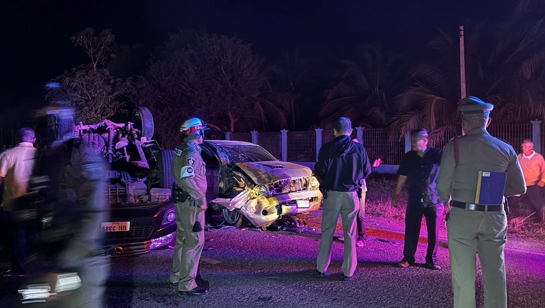 ได้เข้าตรวจสอบอุบัติเหตุรถยนต์ชนท้ายกันมีผู้บาดเจ็บ ถนนโนนสูง – ขามสะแกแสง ต.โนนสูง
